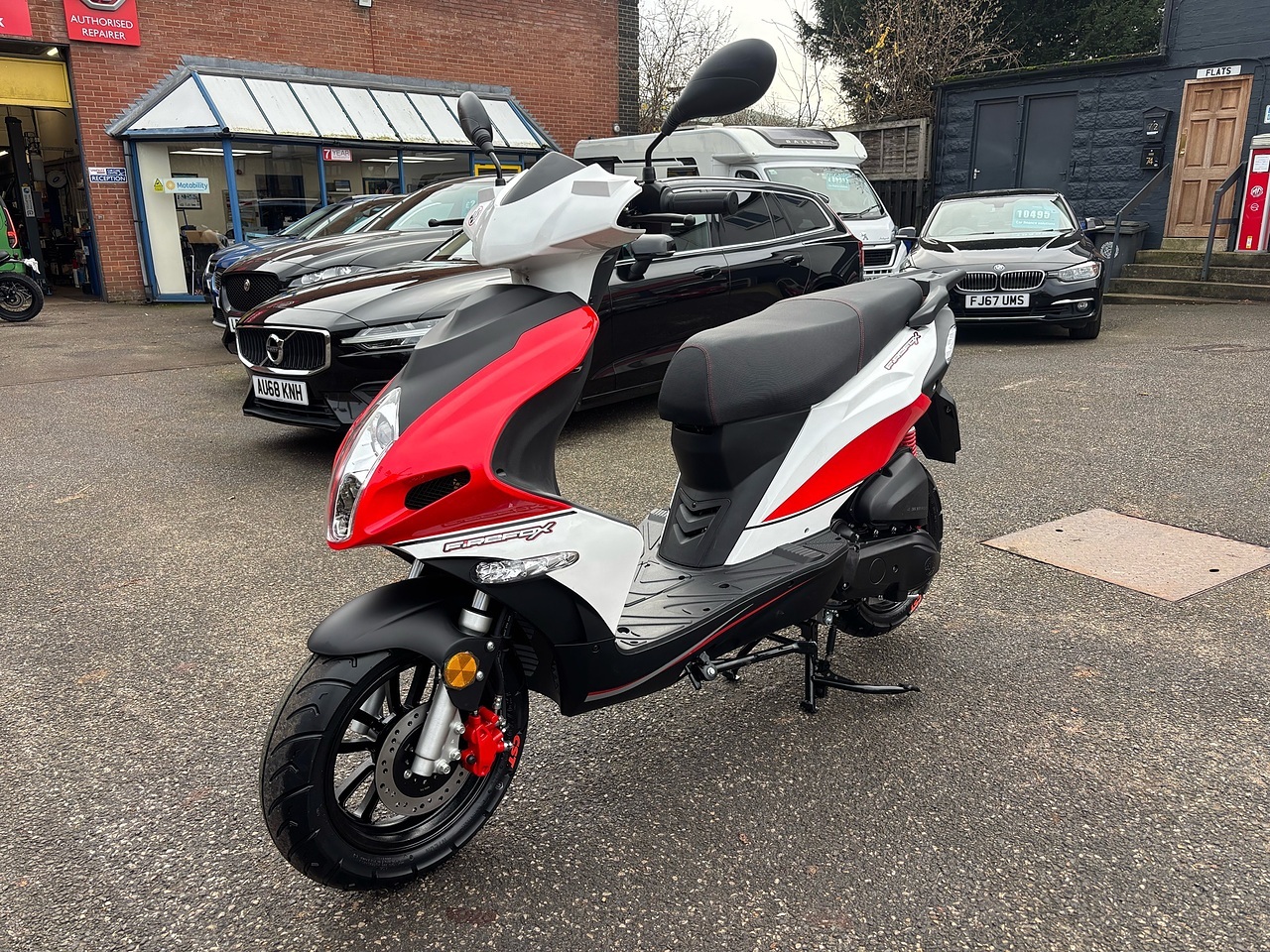 Brand New ! The Firefox 125 is the ultimate fusion of sport and style, for riders seeking an exhilarating experience. With its sharp lines and practical design, this 125cc scooter is more than just a mode of transportation, the Firefox embodies your passion for performance and aesthetics. The Firefox 125 is light and nimble, inspiring confidence with every twist of the throttle. Prepare for an invigorating ride like no other. £1999 on the road