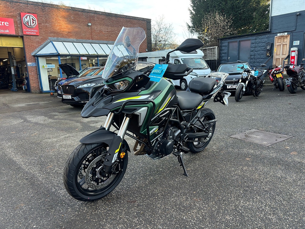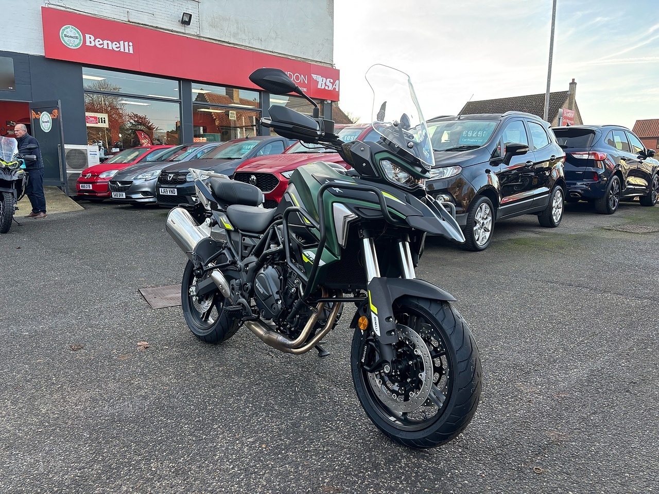 Brand New Benelli 702 TRK in Forest Green. The latest MY2025 model Benelli TRK702 benefits from the following changes to the 2024 model: Heated grips fitted as standard, Heated riders seat fitted as standard, revised shaped seats for additional comfort Upper Engine Crash bars now fitted as standard. Improved design for both the windscreen and rear rack