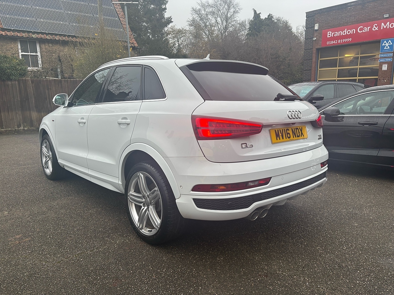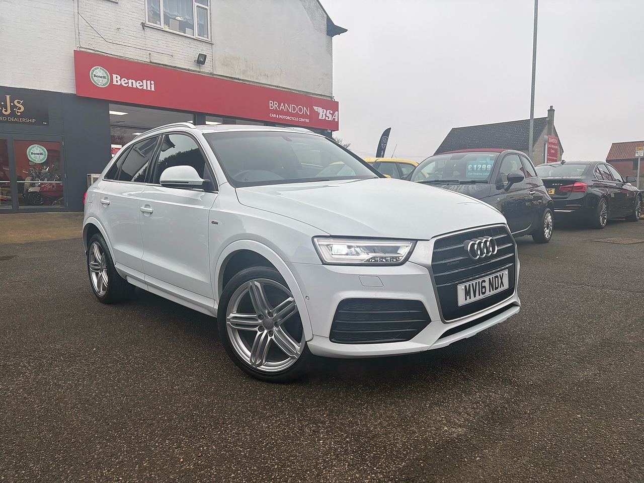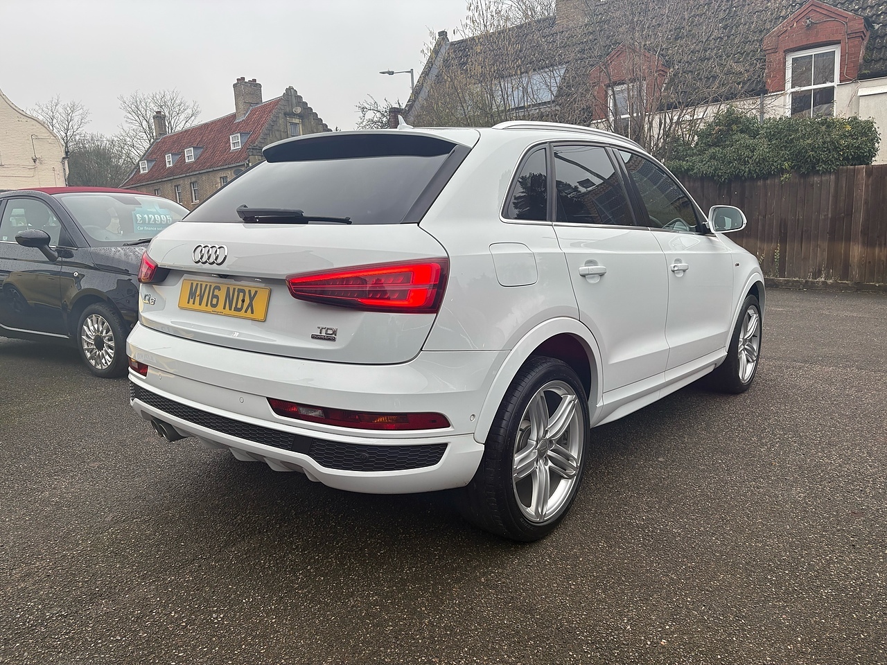 16/16 Audi Q3 2.0 TDI S-Line Plus in White with 105052 miles and Full Service History, Alloy Wheels, Sat Nav, Heated Seats, Auto Tailgate, Parking Sensors with Reverse Camera, Climate Control, DAB Radio, Cruise Control, Bluetooth Phone Prep, 6 Months Warranty £9295.