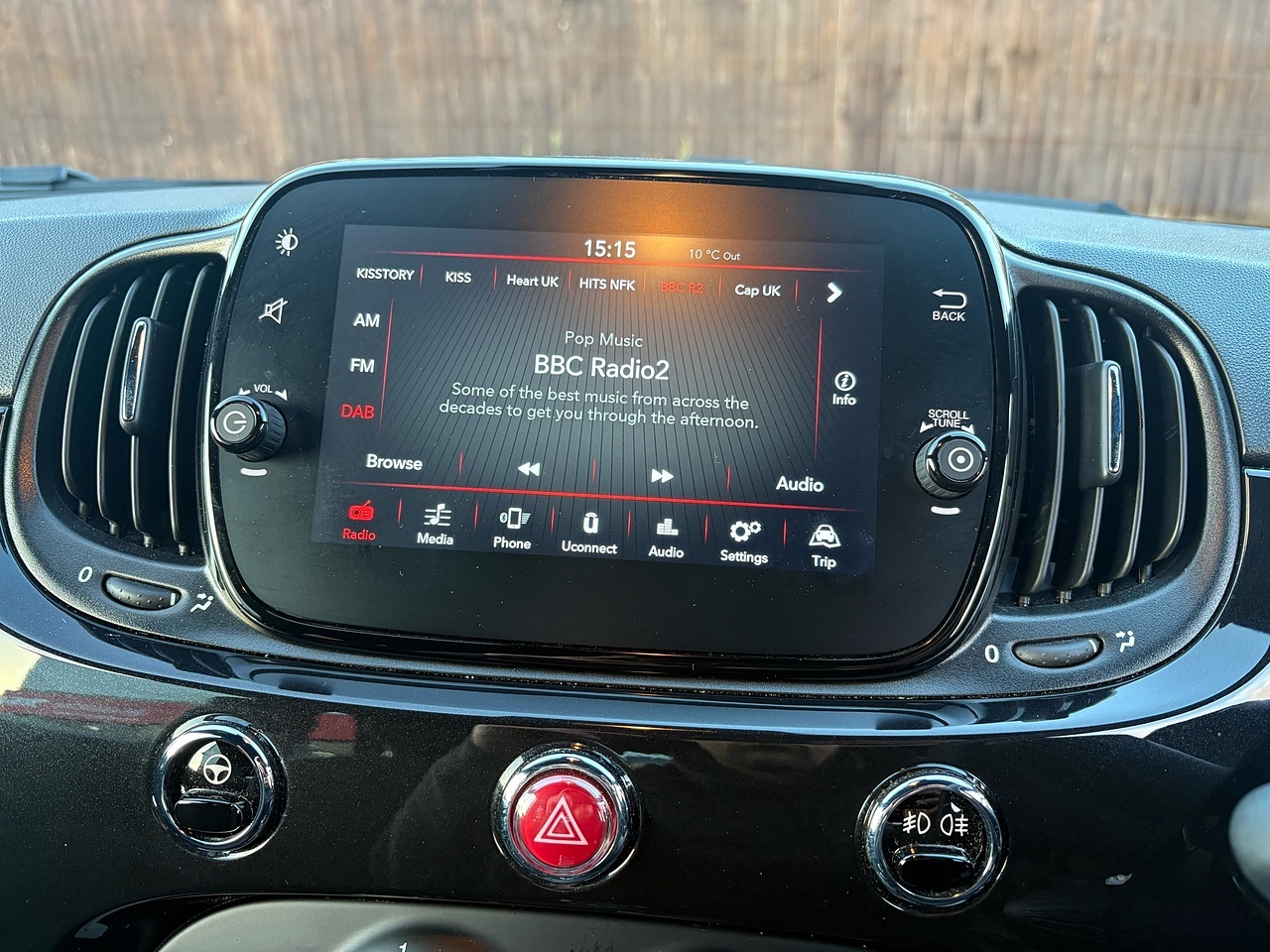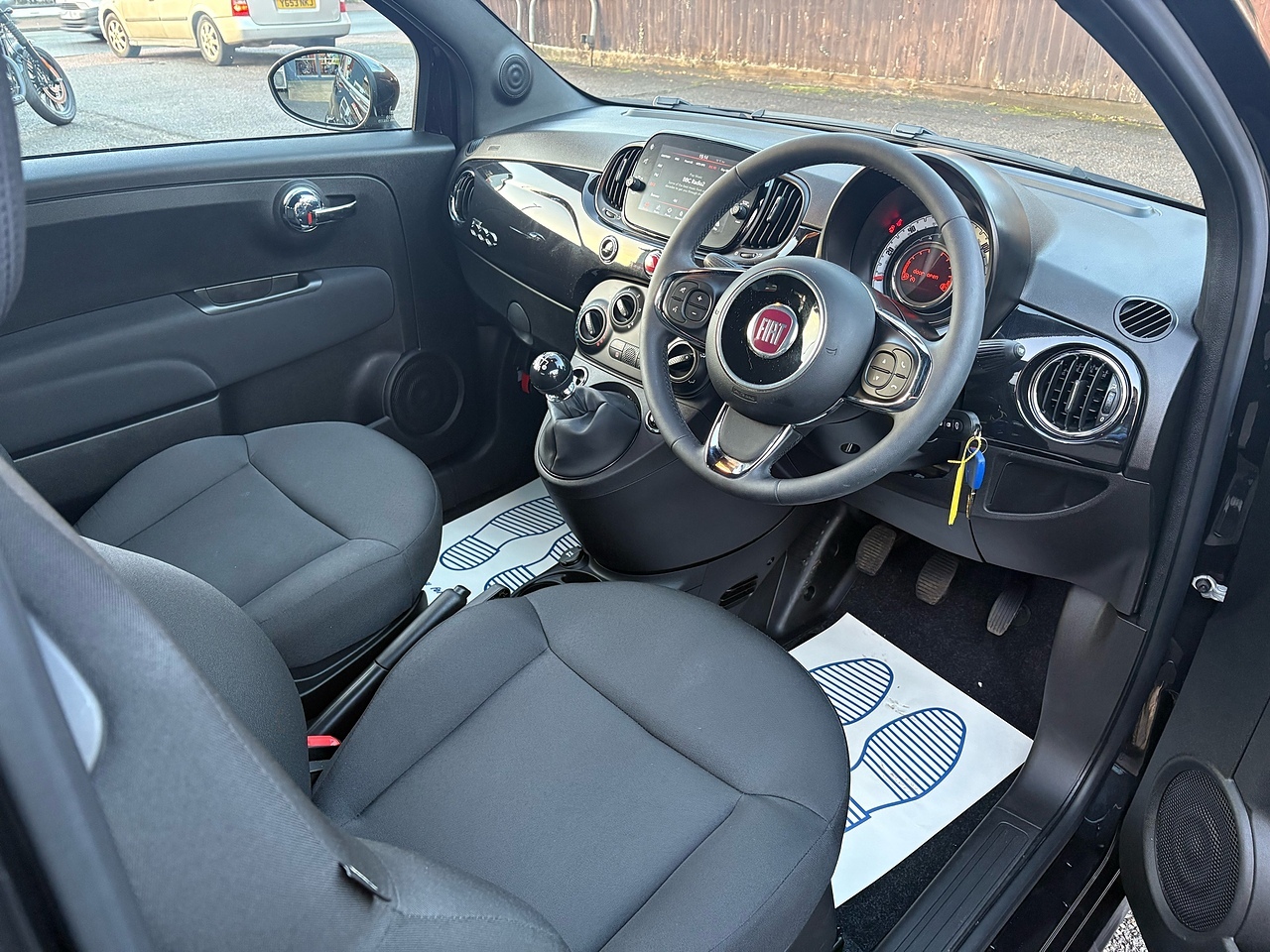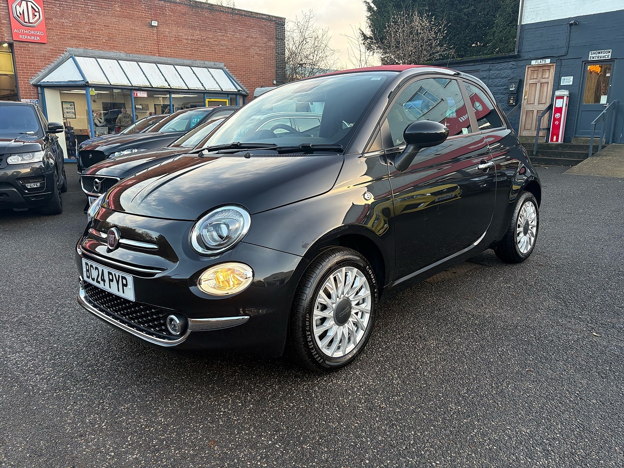 24 Plate Fiat 500C MHEV 1.0 in Black with 5724 Miles and Full Service History, 2 Keys, Alloy Wheels, Electric Roof, Electric Windows, Sat Nav, Aircon, Bluetooth Phone Prep, USB Port, Remote Central Locking, £12995 with remainder of Fiat Warranty.