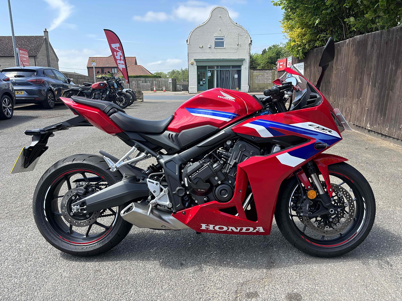 24 Plate Honda CBR 650R E Clutch with only 1800 miles . The CBR650R is a beautiful, four-cylinder middleweight sports motorcycle. It’s got a smooth rush of turbine-like inline power, from low- to high-rpm. The opportunity to ride with the next-level performance advantage that shifting with Honda E-Clutch delivers. Aggressively redrawn styling, inspired by our CBR1000RR-R Fireblade. And premium technology, like new TFT screen and Honda RoadSync connectivity, that make this star shine even brighter. This bike is in stunning condition in the Fireblade Honda Tri Colour Scheme and has the remainder of the Honda Warranty. £7395