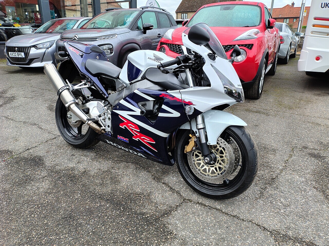 02 Plate Honda CBR900RR 954 Fireblade in White and Blue showing 12016 miles on the clocks but cannot be confirmed as correct, as showing higher on MOT history may be due to clock change from KM's clock, This Blade is in stunning condition throughout, Titanium Exhaust System, MRA Screen, R&G Crash Protection, Excellent Bridgestone Tyres, I doubt you will find a nicer example. £3995 inc 3 Months Warranty