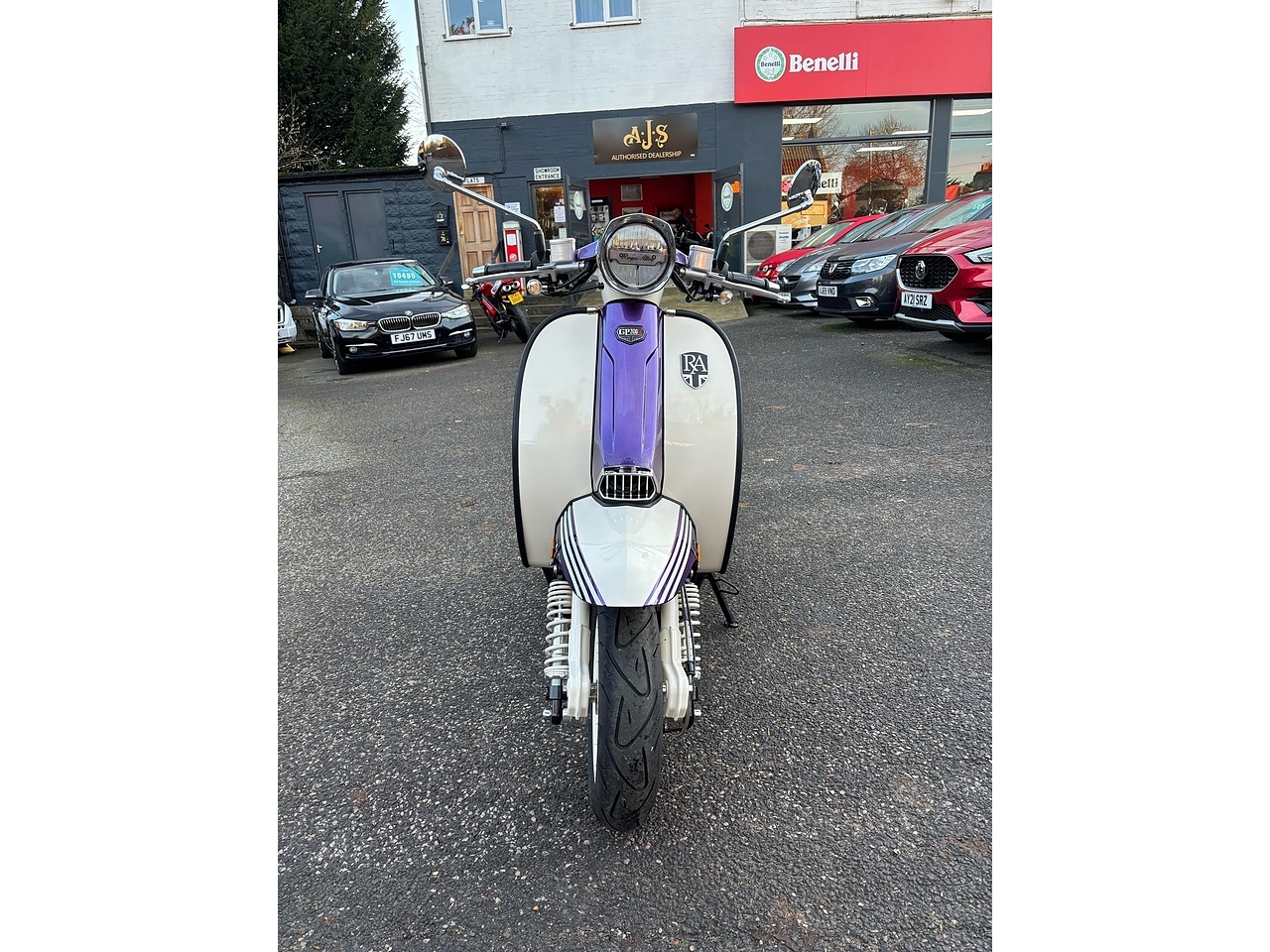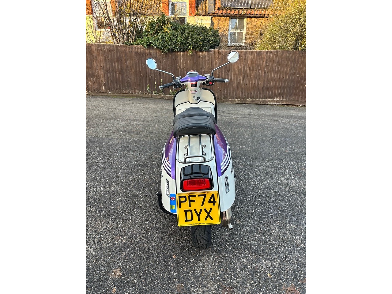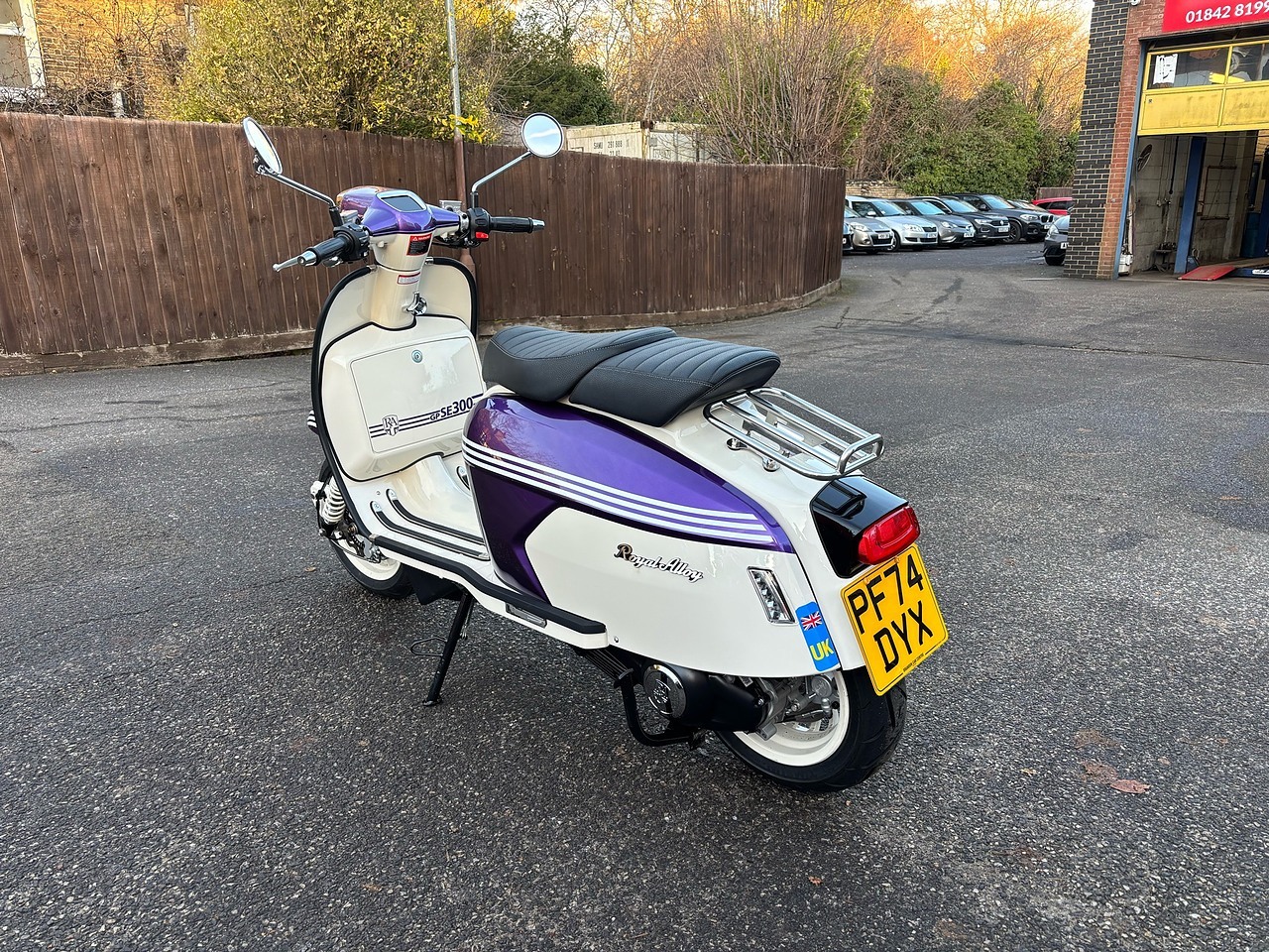 74 plate Royal Alloy GP300SE in Purple and Ivory with only 541 miles from new. Stunning retro scooter with the 278cc Piaggio engine and fuel injection make this one of the best in its class for performance and fuel economy. Stunning condition throughout with remainder of R/A warranty. £3995